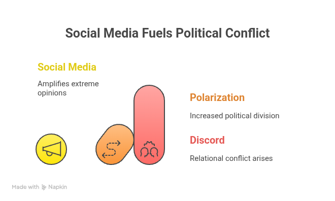 Many people wonder why politics has surged as a source of conflict in relationships. Personal opinions notwithstanding, the rise of social media is a significant contributor. Platforms amplify opinions and share headlines that are designed to provoke outrage (and therefore engagement, which means profit).
